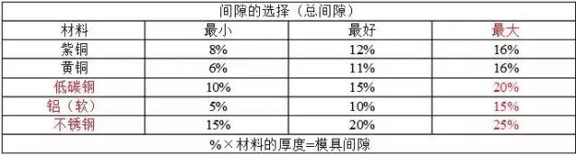 請參照下表選擇模具間隙(表中數(shù)據(jù)為百分數(shù))
